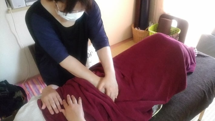 残った時間で、腸もみを学習することに。モデルさんに声を掛けながら、腸もみをしていきます。